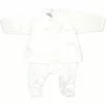 Pantalon sarouel avec petit lurex multicolore, liseré rose pâle à la taille, taille élastique réglable, deux petites poches italiennes sur les côté, chevilles retroussées