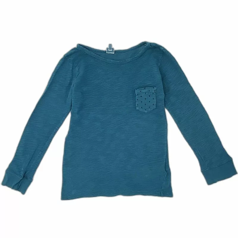 T-shirt manches longues bleu, encolure dégagée, petite poche plate en gaze de coton impressions étoiles à la poitrine, manches en bord-côtes